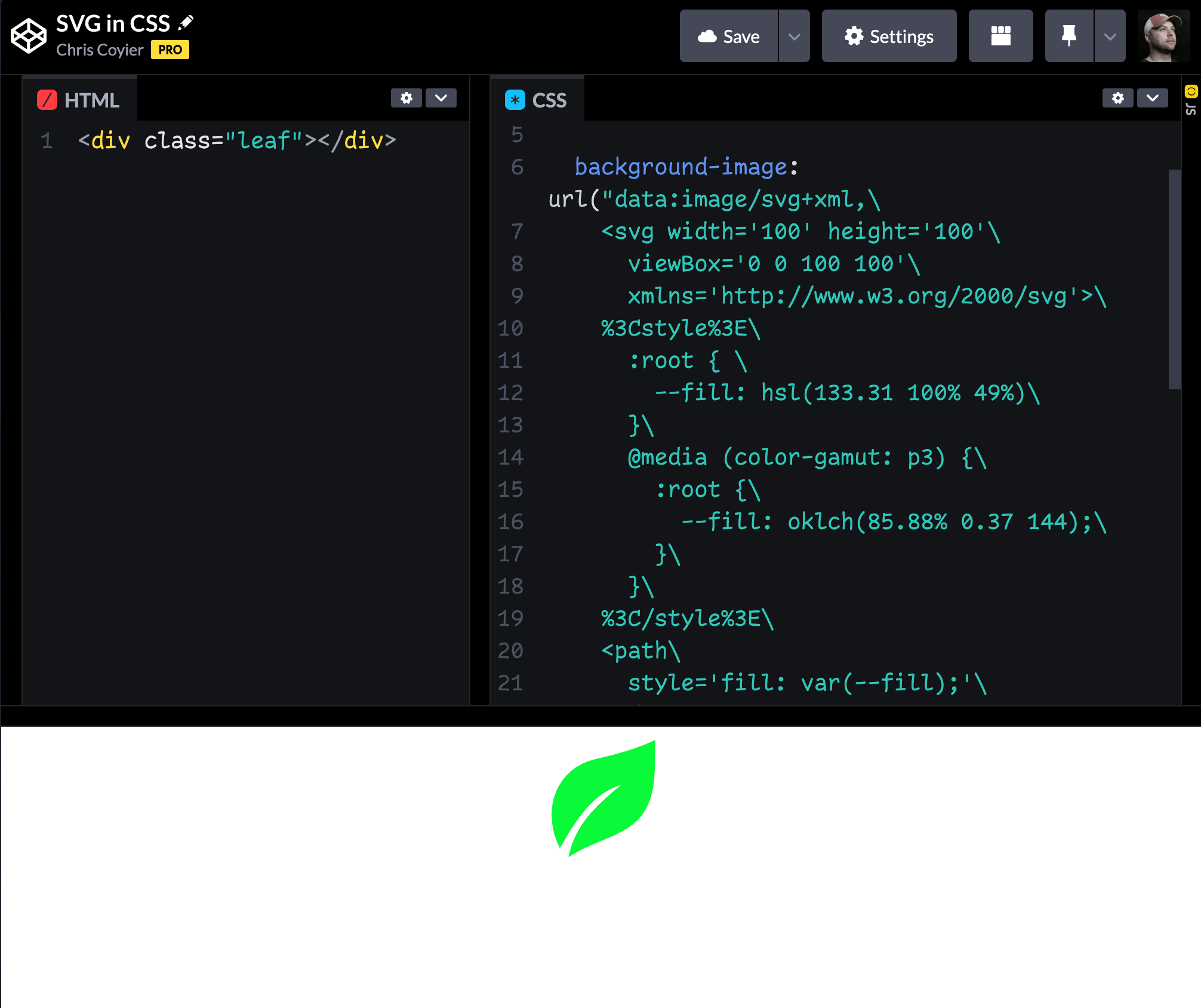 Un-Encoded SVG Backgrounds in CSS (Also, Writing CSS in CSS lolz) Chris Coyier